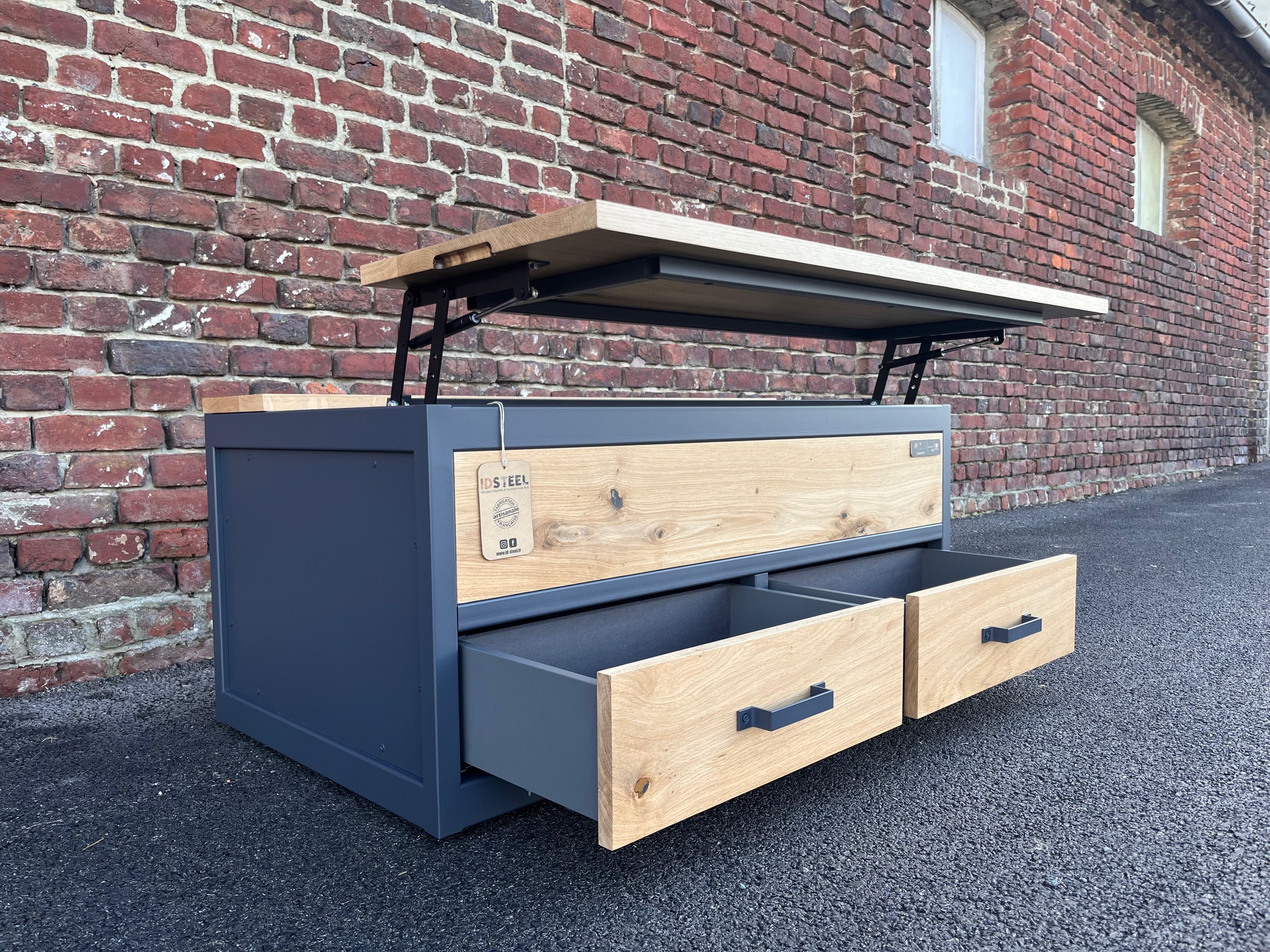 Nous sommes ravis d'avoir fait appel à ID STEEL pour notre ensemble table basse + meuble TV ! Guillaume a été très à l'écoute de nos souhaits et a su réaliser exactement les meubles que nous voulions! Il nous a livré à la maison, pro jusqu'au bout! Nous recommandons à 100%
